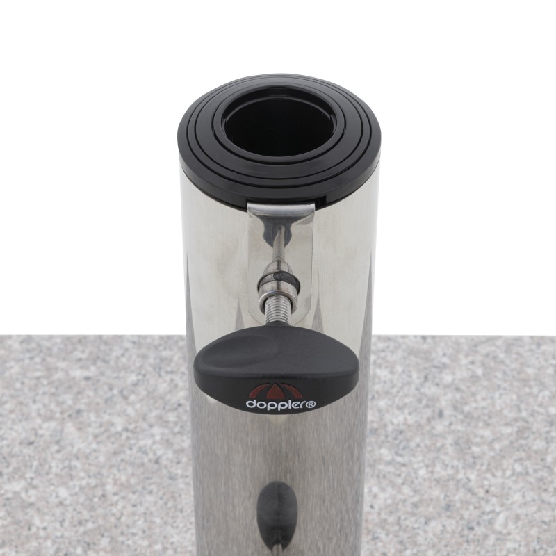 Tento stojan je možné využiť takmer všade, či už sa jedná o balkón, záhradu alebo terasu. Vďaka svojej hmotnosti je podstavec vhodný pre slnečníky s priemerom až 275 cm. Slnečník je optimálne upevnený v držiaku z nerezovej ocele pomocou dvoch upevňovacích skrutiek. Základňa je vyrobená z leštenej žuly. Stojan je tiež vybavený praktickým zapusteným úchytom. To umožňuje ľahké zdvíhanie a nastavenie stojana.