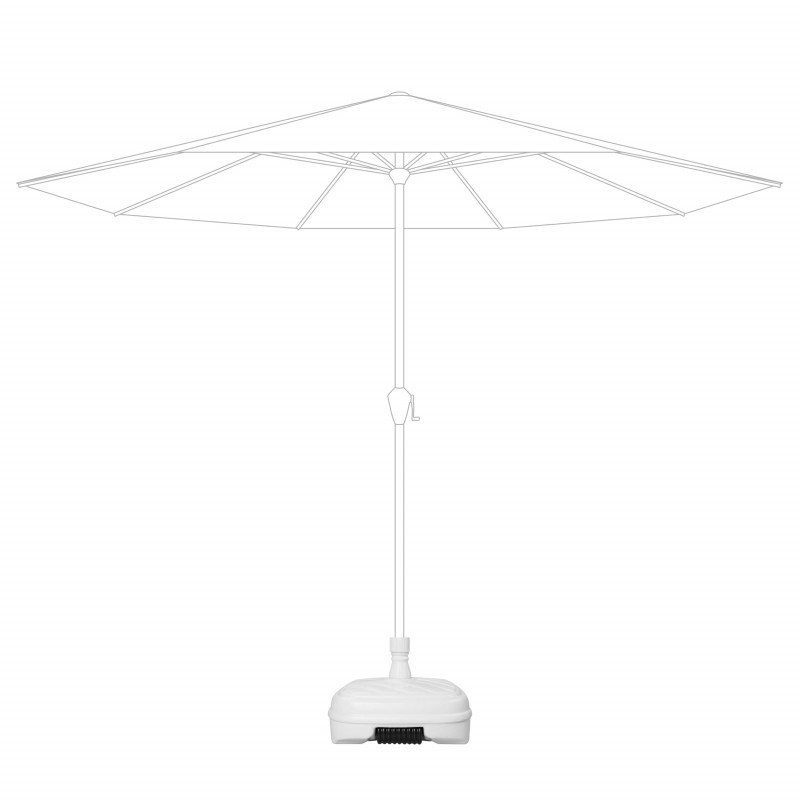 Plniteľný stojan vhodný pre slnečníky do 300 cm. 50-litrová základňa je ideálna pre slnečníky na balkóne alebo na strešnej terase. Vďaka valčekom zospodu je ľahká manipulácia aj s plne naplneným podstavcom. Pre optimálnu stabilitu odporúčame naplniť vodou alebo pieskom.