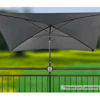 Tento slnečník je ideálny na balkón alebo terasu. Slnečník je možné naklopiť, preto ponúka dostatočnú ochranu proti slnku. Vodoodpudivý polyesterový poťah je k dispozícii v rôznych farbách a má vysokú ochranu proti UV žiareniu 50+.