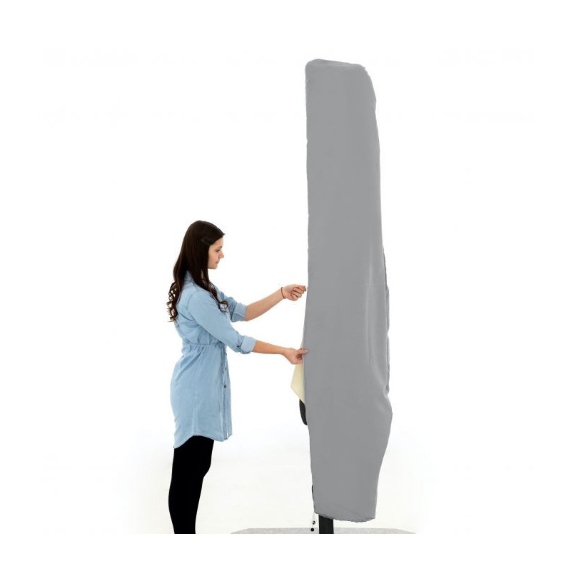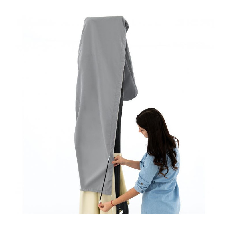 S týmto krytom je váš slnečník bezpečne chránený pred poveternostnými vplyvmi a vyblednutím pred slnkom. Použitie ochranného krytu výrazne zvyšuje životnosť slnečníka. Ochranný kryt je vyrobený zo 100% polyesterovej tkaniny odolného voči poveternostným vplyvom. Je vybavený zaväzovacou šnúrkou, zipsom a ovládacou tyčou. Vďaka tomu je možné poťah ľahko pretiahnuť cez slnečník.