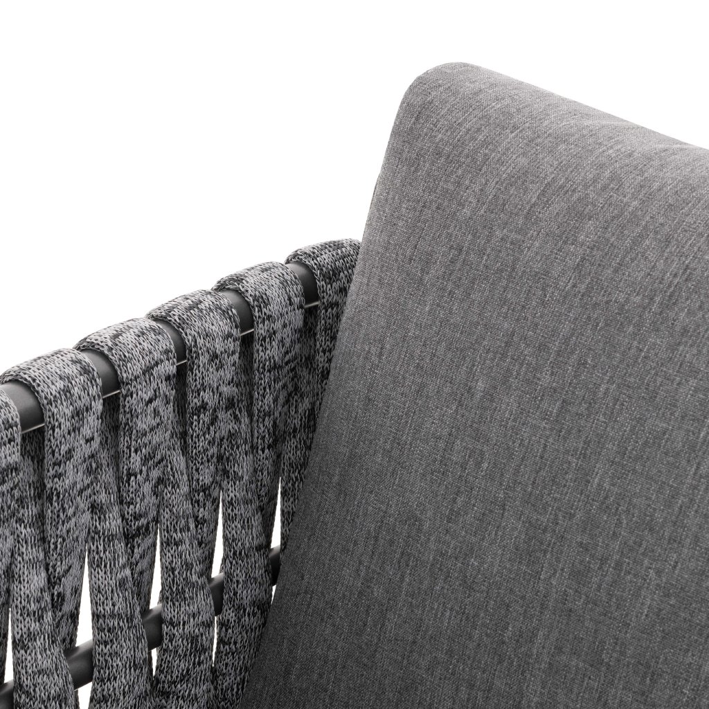 Pevná hliníková konštrukcia s moderným práškovým nástrekom v antracitovej farbe dodáva súprave nielen robustnosť, ale aj nadčasový vzhľad, ktorý sa hodí do každého exteriéru i interiéru. Lanový výplet na opierkach a područkách zabezpečuje atraktívny dizajn a pohodlie, ktoré oceníte pri každom posedení.