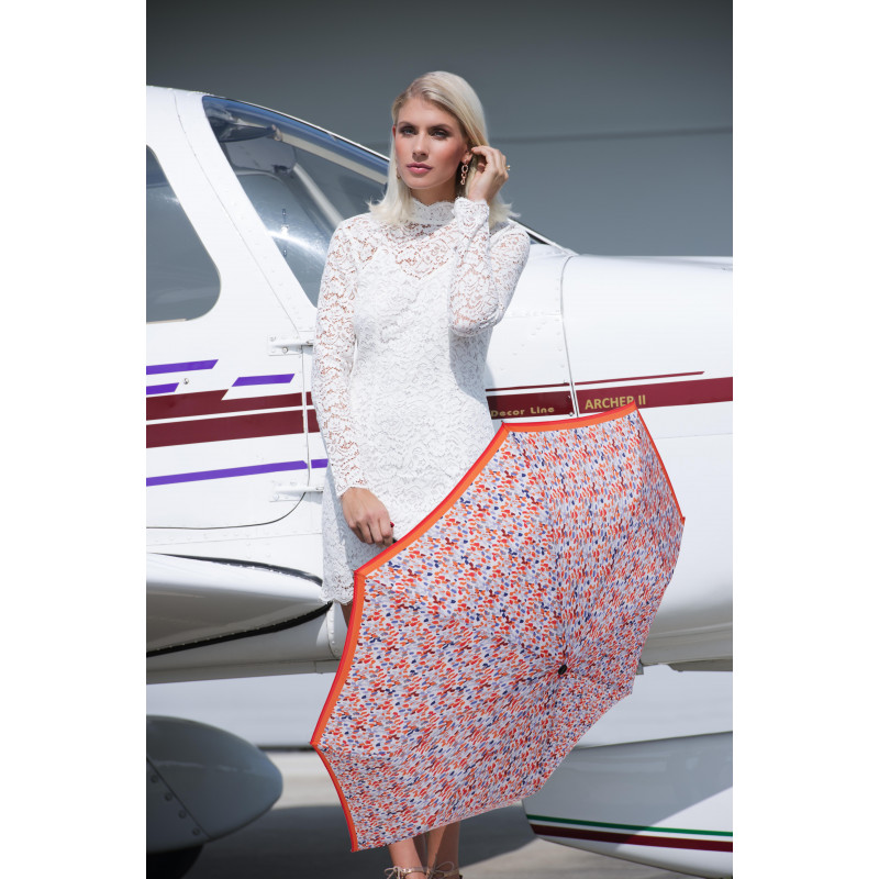 Plne automatický dáždnik. Stabilný vďaka konštrukcii zo sklolaminátu a ocele. Pri prevrátení dáždnika nedôjde k jeho poškodeniu. Polyesterový poťah je odolný voči zmenám vlhkosti a teplôt, nezráža sa. UV ochrana 50+.
