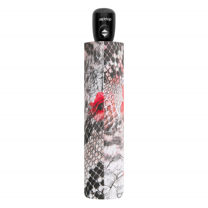 Kvalitný a elegantný dámsky plne automatický dáždnik s kvetinovým motívom. Veľmi kvalitná, výrazná potlač. Kostra dáždnika je vyrobená v kombinácii materiálov oceľ / sklolaminát a zaručuje pevnosť a stabilitu.