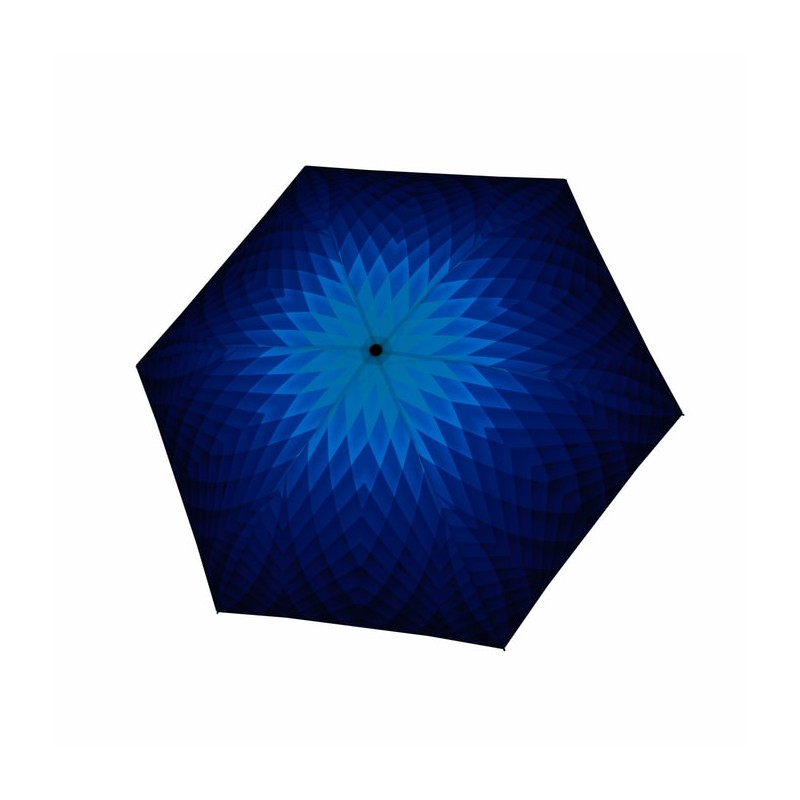 Malý plochý skladací dáždnik Carbonsteel Mini Slim Fusion Blue od značky Doppler sa pohodlne zmestí do každej kabelky či tašky. Konštrukcia z vysoko odolnej karbónovej ocele je ľahká a zároveň veľmi pevná. Moderný geometrický poťah zvýrazňuje jeho eleganciu. Mechanický systém umožňuje jednoduché ručné otváranie a zatváranie. Dáždnik bol testovaný vo veternom tuneli BMW do rýchlosti 100 km/h.