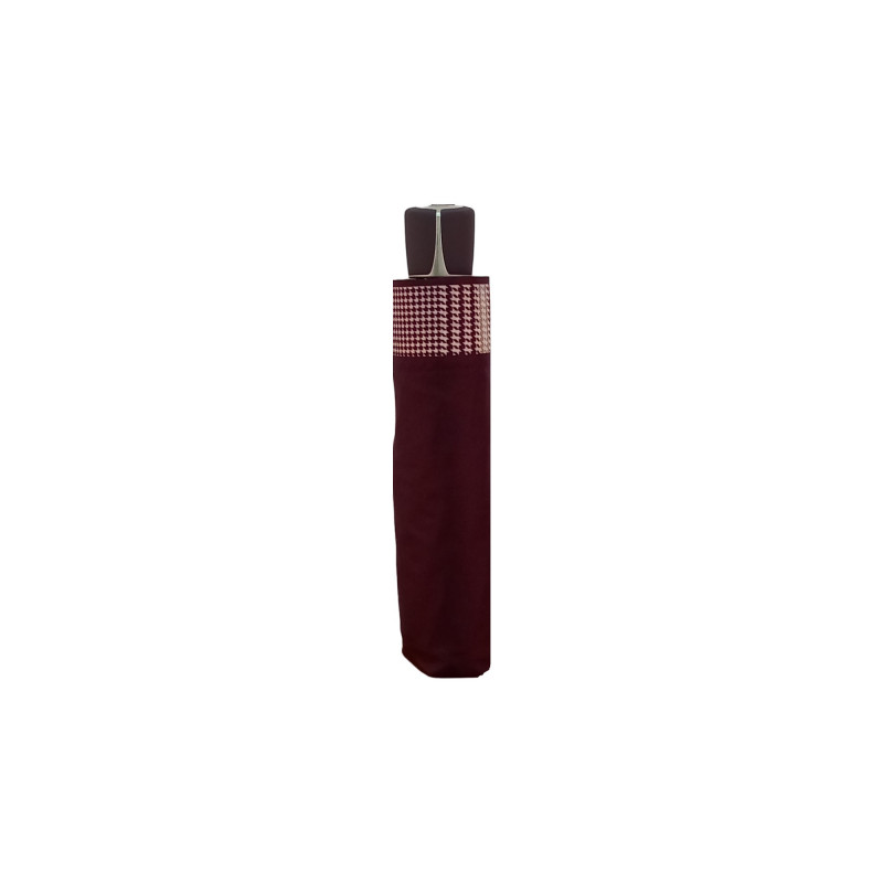 Dámsky skladací dáždnik z kvalitnej konštrukcie zo sklolaminátu, ocele a hliníka. Dáždnik sa ľahko preklopí späť do pôvodnej polohy. Farebne ladiaca rúčka s poťahom. Dáždnik je vhodný do kabelky a má veľkú strechu. Kvalitný ľahký supertenký rýchloschnúci polyesterový poťah.