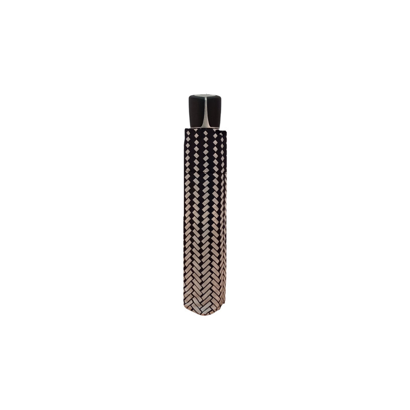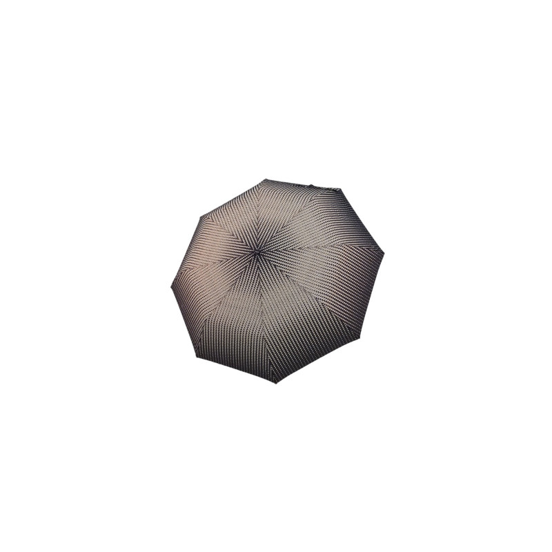 Dámsky skladací dáždnik z kvalitnej konštrukcie zo sklolaminátu, ocele a hliníka. Dáždnik sa ľahko preklopí späť do pôvodnej polohy. Farebne ladiaca rúčka s poťahom. Dáždnik je vhodný do kabelky a má veľkú strechu. Kvalitný ľahký supertenký rýchloschnúci polyesterový poťah.