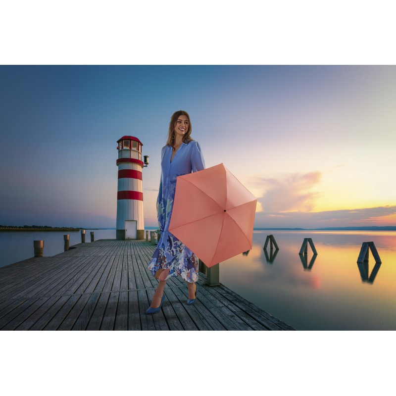 Dámsky skladací štýlový mini dáždnik v 12 pastelových farbách. S váhou len 99 gramov (ľahší ako tabuľka čokolády) je najľahším dáždnikom doppler. S kompaktnými rozmermi (dĺžka zloženého dáždnika je 21 cm) ho bez problémov uložíte do každej kabelky. Ramená z hliníka a karbónu. Poťah supertenký polyester. Testované vo veternom tuneli 80km/h.