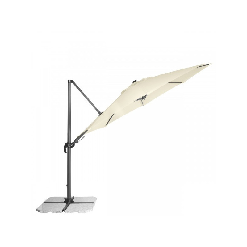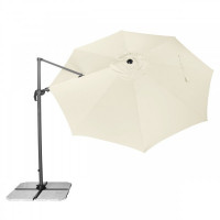 Funkčný slnečník je vybavený kľukovým mechanizmom a je ľahko ovládateľný. Poťah slnečníka je vyrobený z polyesterovej tkaniny, je vodoodpudivý a má dobrú UV ochranu SPF 50+. Slnečník je otočný o 360 °, je možné ho naklápať v siedmich pozíciách a axiálne natáčať na obe strany. Slnečník je dodávaný so stojanom pre 4 ks dosiek 50x50x4 cm (bez dosiek 50x50x4...