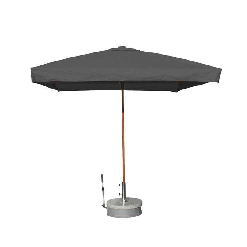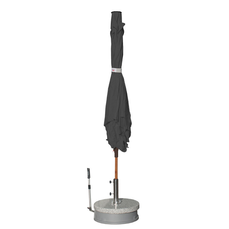 Vyrobený zo svetlo šedej žuly s 2 kolesami a rozšíriteľnou trolejovou rukoväťou pre ľahkú prepravu. Nerezová tyč má niekoľko redukčných krúžkov, ktoré umožňujú použitie slnečníkov s priemerom tyče 32-60 mm. Slnečník sa kotví do tyče (rúrka z nerezovej ocele) pomocou dvoch poistných skrutiek. Vďaka svojej hmotnosti 50 kg je zaistená bezpečná stabilita aj...