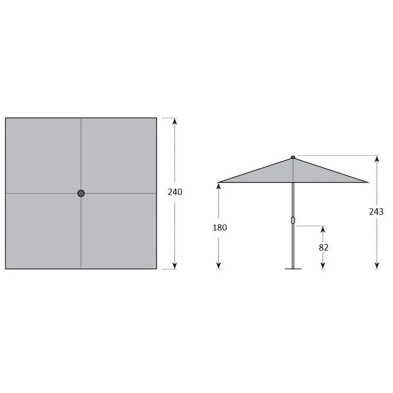 Štvorcový slnečník, ktorý je ideálny aj na menšie terasy. Celý rám je vyrobený z robustného hliníka v imitácii dreva. Vďaka doppler mechanizmu otvárania jednou rukou je jednoduché otváranie aj zatváranie slnečníka. Poťah slnečníka je s volánom, s ventilom, odolný voči poveternostným vplyvom, má vysokú stálofarebnosť stupeň 6 a tiež vysokú UV ochranu 80. Poťah je snímateľný a možno ho prať v ruke.