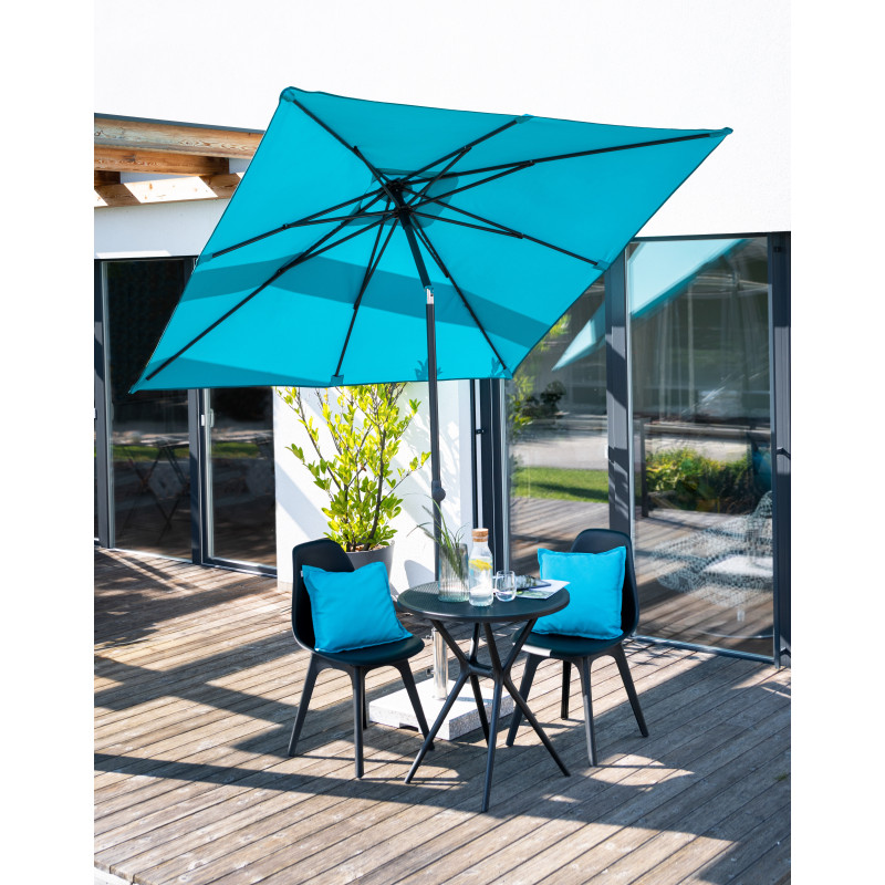 Tento slnečník je ideálnym spoločníkom na záhradu alebo terasu. Rám slnečníka je vyrobený z hliníka, ktorý mu dodáva na ľahkosti a stabilite. Veľkou výhodou je aj ""Push up"" funkcia pre ľahšie otváranie a zatváranie. Slnečník disonuje komfortnou funkciou naklopenia strechy. Navyše je aj výškovo nastaviteľný. Poťah je vyrobený z kvalitnej polyesterovej tkaniny, ktorá je odolná voči poveternostným vplyvom a zároveň ponúka dobrú UV ochranu 50+.