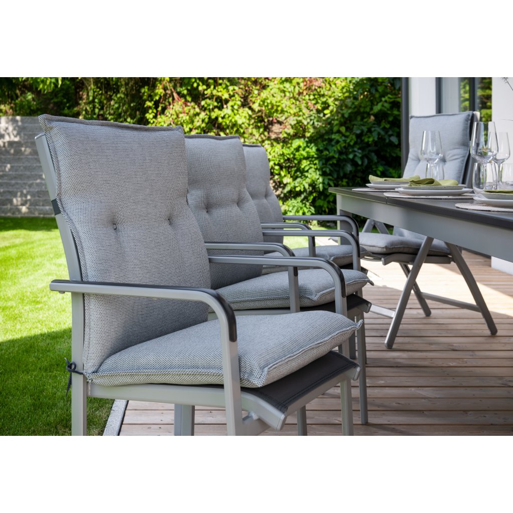 Poduška s nízkou opierkou na záhradný nábytok rady STAR je v prevedení s obšitým lemom, 2x prešitý do kruhu v operadle. Uchytenie je pomocou posuvnej spony. Vďaka spone si môžete nastaviť veľkosť podľa rozmeru a druhu stoličky, spona je pevná a nevyťahuje sa. Upevnenie sedadla je pomocou dvoch šnúrok v ohybe polstra. Poťah je nesnímateľný.