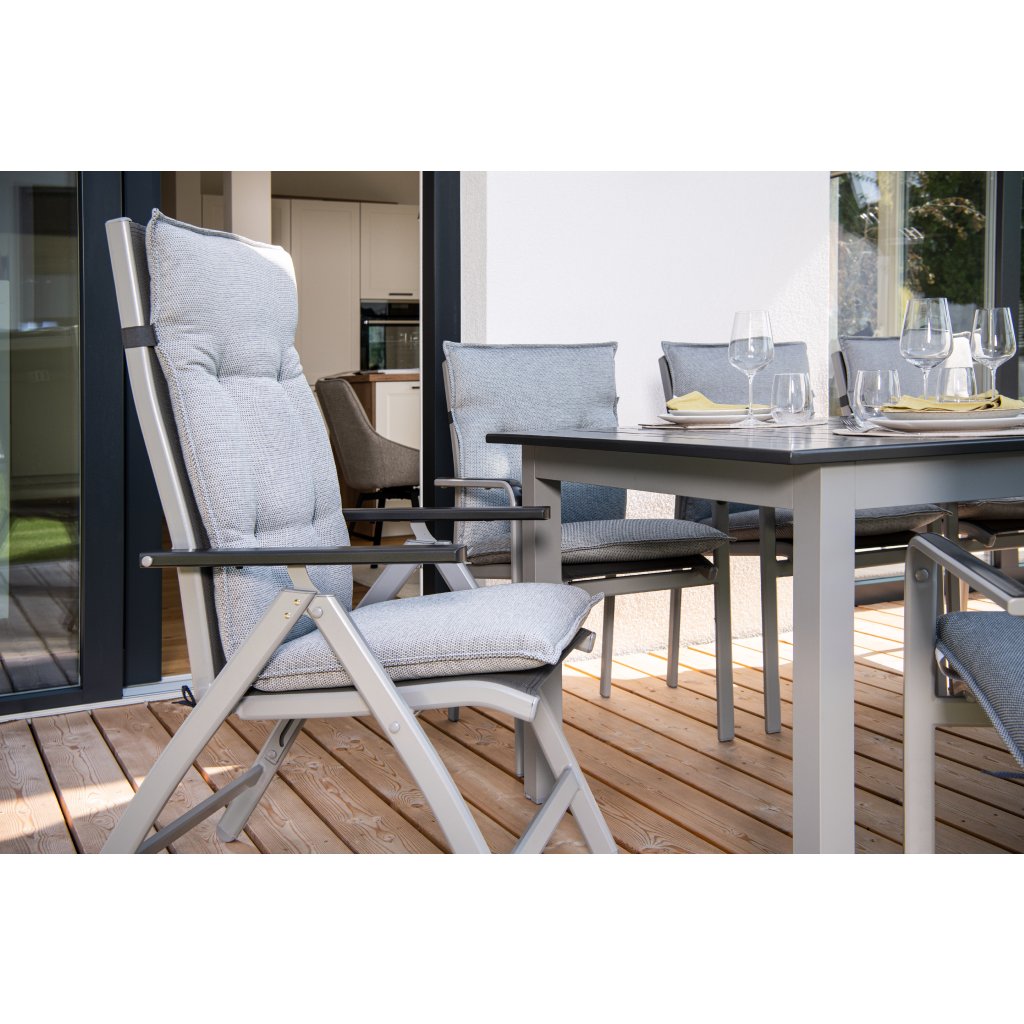 Poduška s vysokou opierkou na záhradný nábytok radu STAR je v prevedení s obšitým lemom, 4x krúžkovo prešitý v operadle. Uchytenie je pomocou posuvnej spony. Vďaka spone si môžete nastaviť veľkosť podľa rozmeru a druhu stoličky, spona je pevná a nevyťahuje sa. Upevnenie sedadla je pomocou dvoch šnúrok v ohybe polstra. Poťah je nesnímateľný.