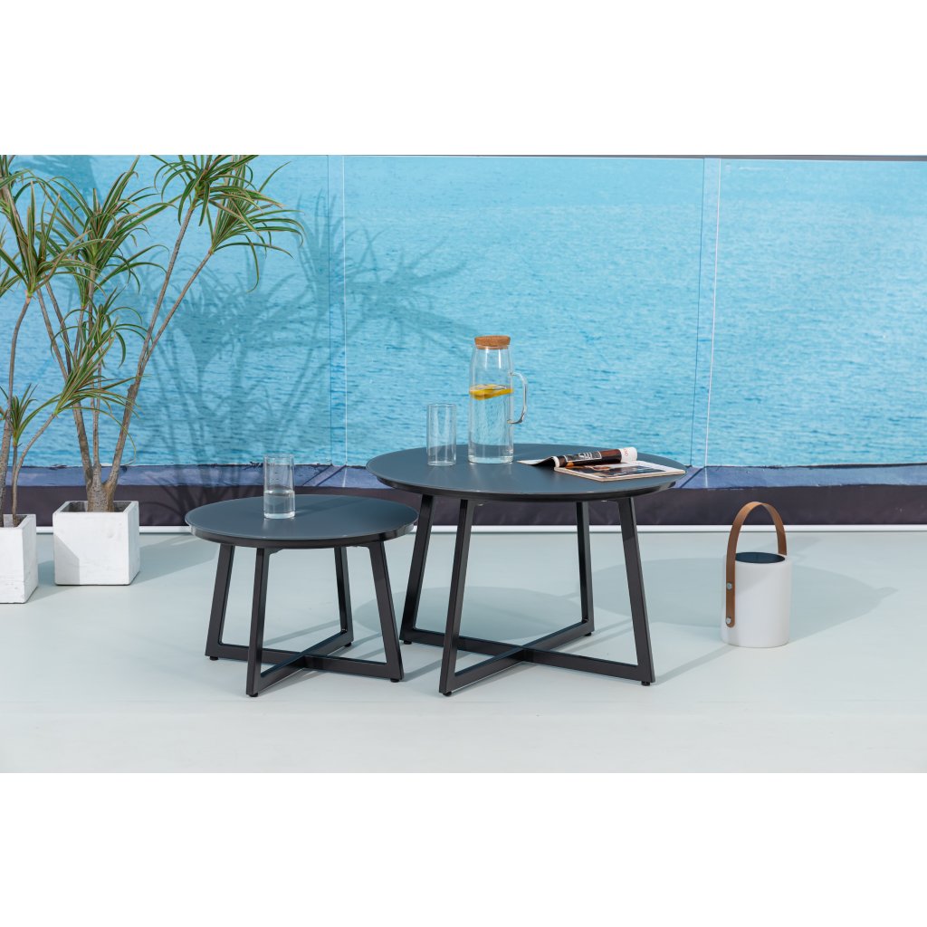 Flexibilné záhradné stolíky Tiso sú vyrobené z pevného hliníka so štruktúrovaným sklom v antracitovej farbe. Čistá línia a moderný dizajn konferenčných záhradných stolíkov ponúka veľké využitie, kedy máte možnosť si zostaviť celú modernú záhradnú súpravu alebo konferenčné stolíky využiť v kombinácii s iným záhradným nábytkom.