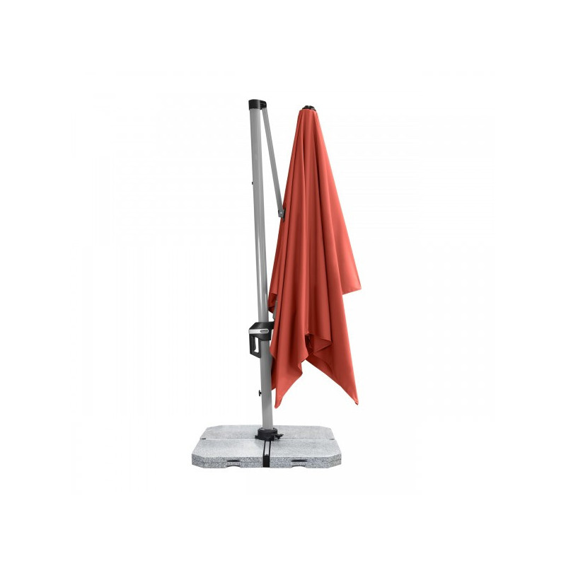 Žulový stojan, ktorý vďaka kolieskam na spodnej strane ľahko presuniete na požadovanú pozíciu na terase. Vhodný pre slnečníky s priemerom strechy až 350 cm. Žula je mimoriadne tvrdá a odolná, takže podstavec je absolútne odolný voči vplyvom počasia. Musíme však zdôrazniť, že žula je prirodzený produkt, takže štruktúra a farba sa môže líšiť.