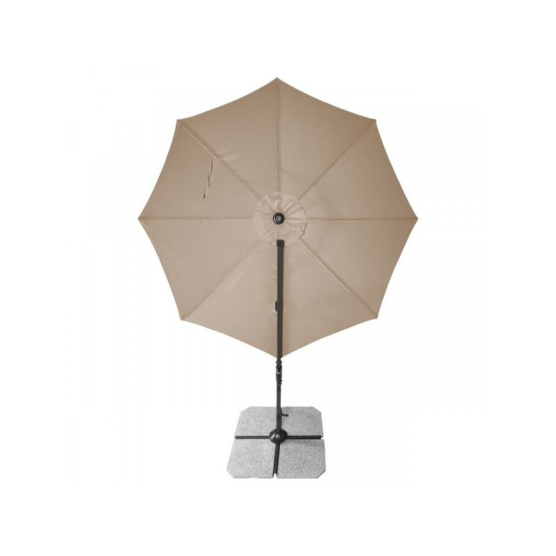 Žulový stojan, ktorý vďaka kolieskam na spodnej strane ľahko presuniete na požadovanú pozíciu na terase. Vhodný pre slnečníky s priemerom strechy až 350 cm. Žula je mimoriadne tvrdá a odolná, takže podstavec je absolútne odolný voči vplyvom počasia. Musíme však zdôrazniť, že žula je prirodzený produkt, takže štruktúra a farba sa môže líšiť.