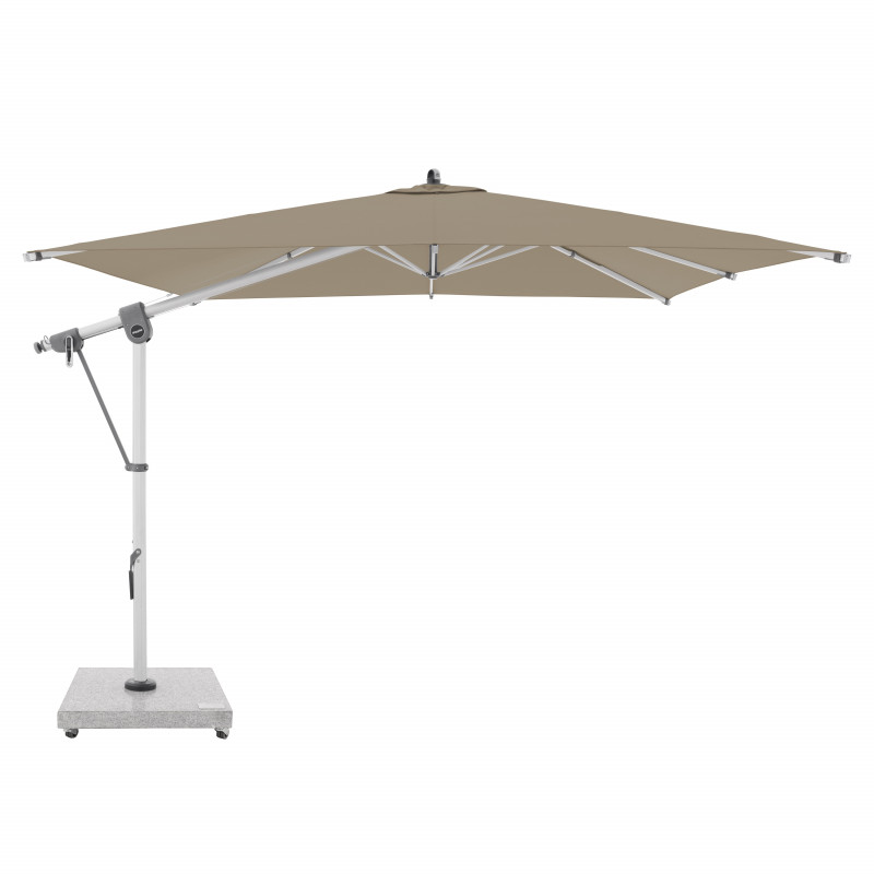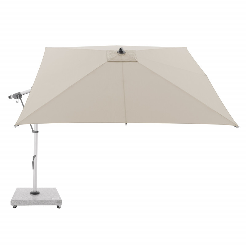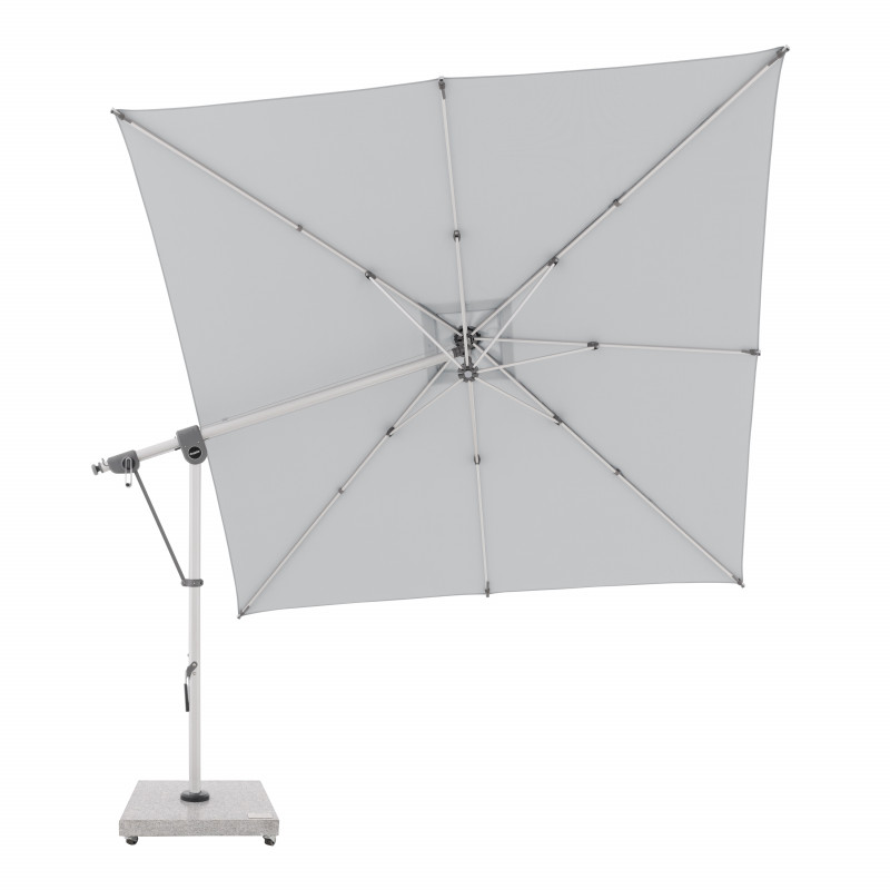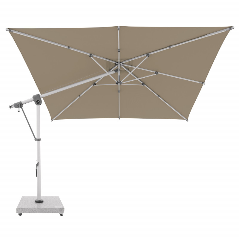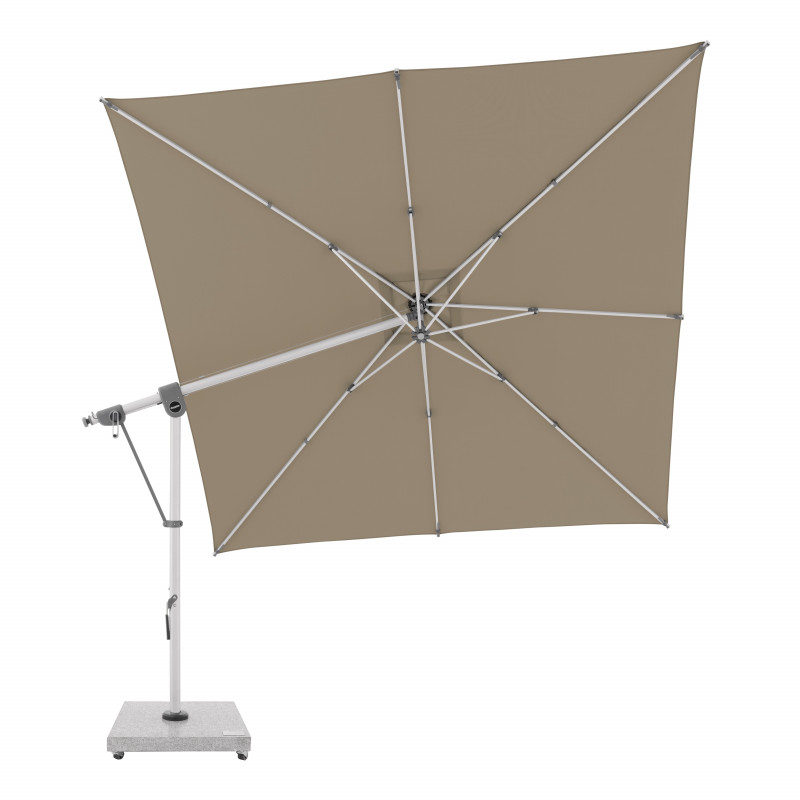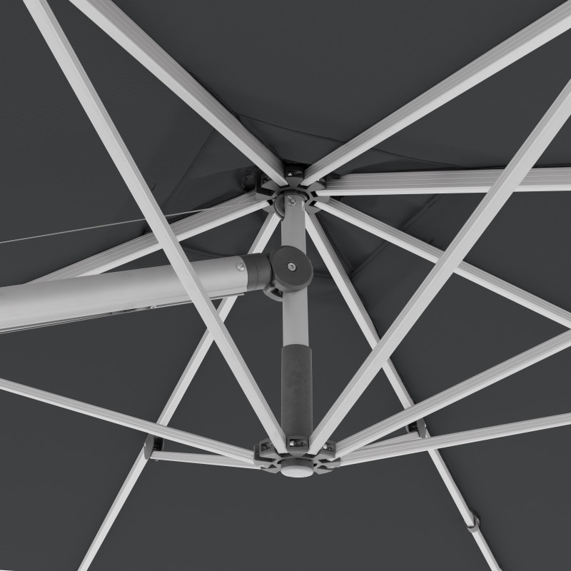 Tento multifunkčný slnečník je možné optimálne prispôsobiť polohe slnka vďaka svojej schopnosti o 360 ° a obojstrannému bočnému naklápaniu strechy. Konštrukcia je vyrobená z vysoko akostného hliníka a všetky diely sú skrutkované. Slnečník má novo vyvinutý ozubený hnací remeň, ten zaisťuje dlhotrvajúcu a bezproblémovú prevádzku pri otváraní a zatváraní...