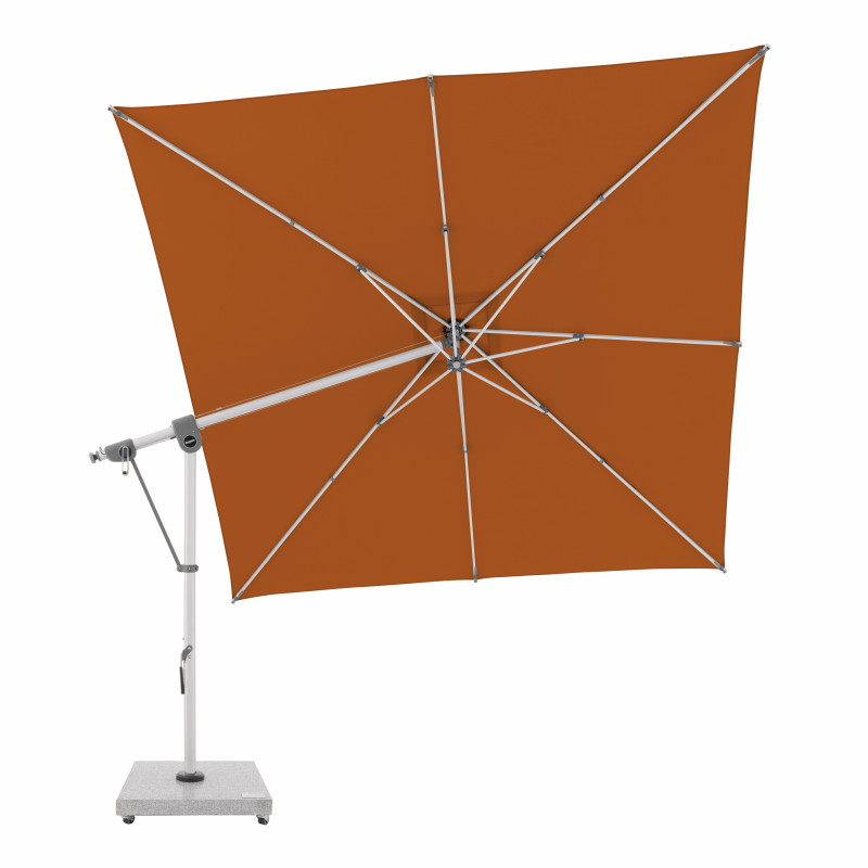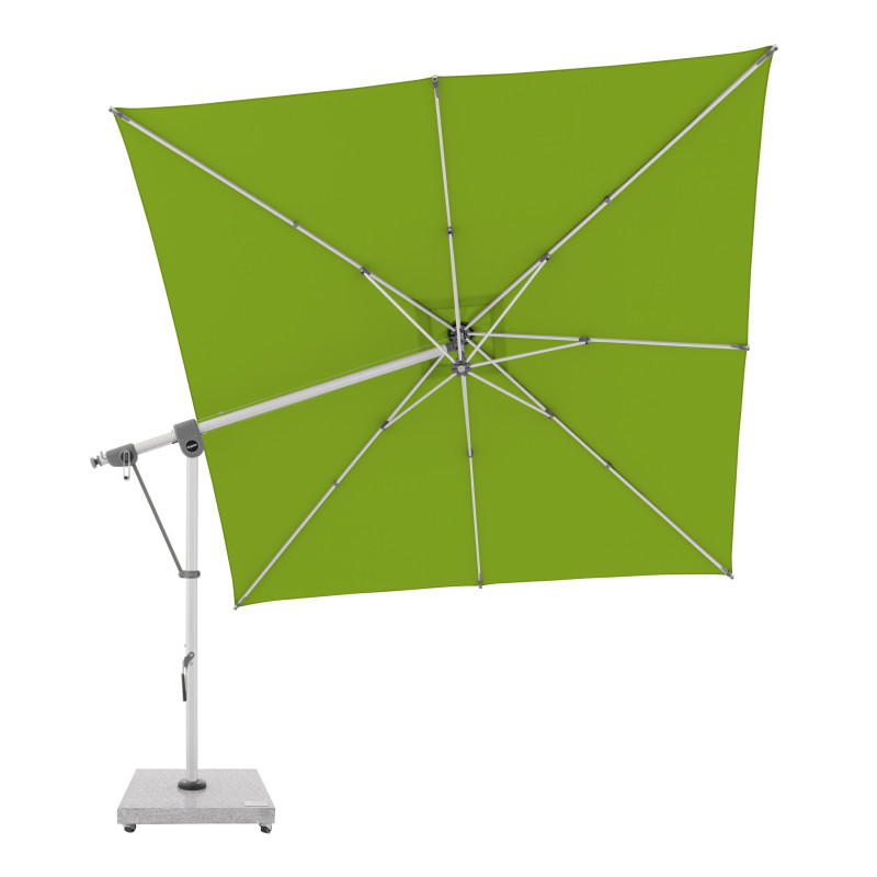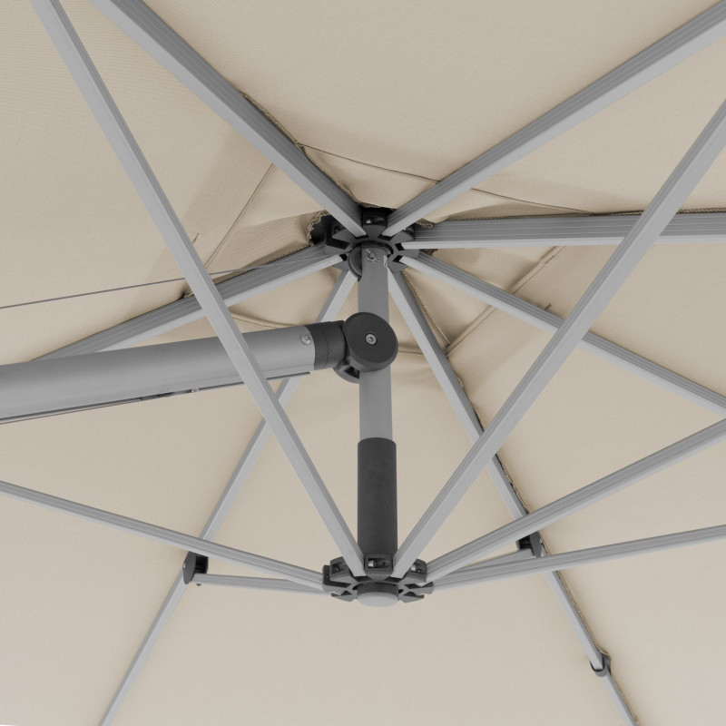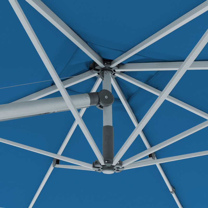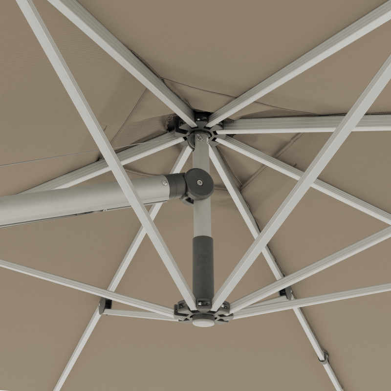 Tento multifunkčný slnečník je možné optimálne prispôsobiť polohe slnka vďaka svojej schopnosti o 360 ° a obojstrannému bočnému naklápaniu strechy. Konštrukcia je vyrobená z vysoko akostného hliníka a všetky diely sú skrutkované. Slnečník má novo vyvinutý ozubený hnací remeň, ten zaisťuje dlhotrvajúcu a bezproblémovú prevádzku pri otváraní a zatváraní slnečníka.