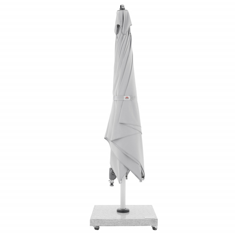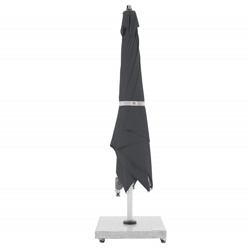 Žulový stojan, ktorý vďaka kolieskam na spodnej strane ľahko presuniete na požadovanú pozíciu na terase. Vhodný pre slnečníky s priemerom strechy až 350 cm. Žula je mimoriadne tvrdá a odolná, takže podstavec je absolútne odolný voči vplyvom počasia. Musíme však zdôrazniť, že žula je prirodzený produkt, takže štruktúra a farba sa môže líšiť.