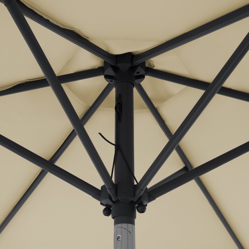 Vďaka ventilačnému otvoru v streche sa pod slnečníkom nekumuluje horúci vzduch, čo prispieva k príjemnejšej klíme a zároveň zvyšuje odolnosť proti poryvom vetra.