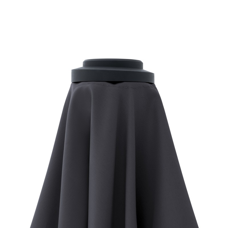 Poťah je vyrobený zo 100% polyesterovej tkaniny, ktorá je odolná voči poveternostným vplyvom, má vysokú svetelnú stálosť a poskytuje účinnú UV ochranu 50+. Slnečník má robustnú a masívnu konštrukciu, ktorá zaisťuje jeho dlhú životnosť a stabilitu.
