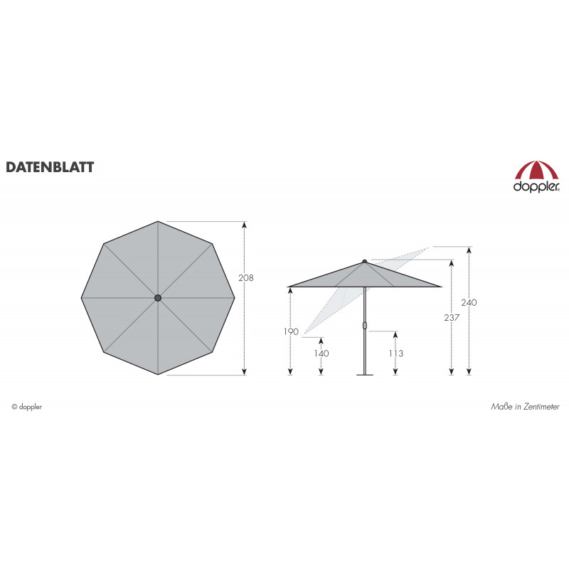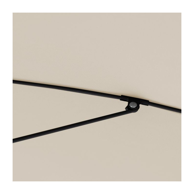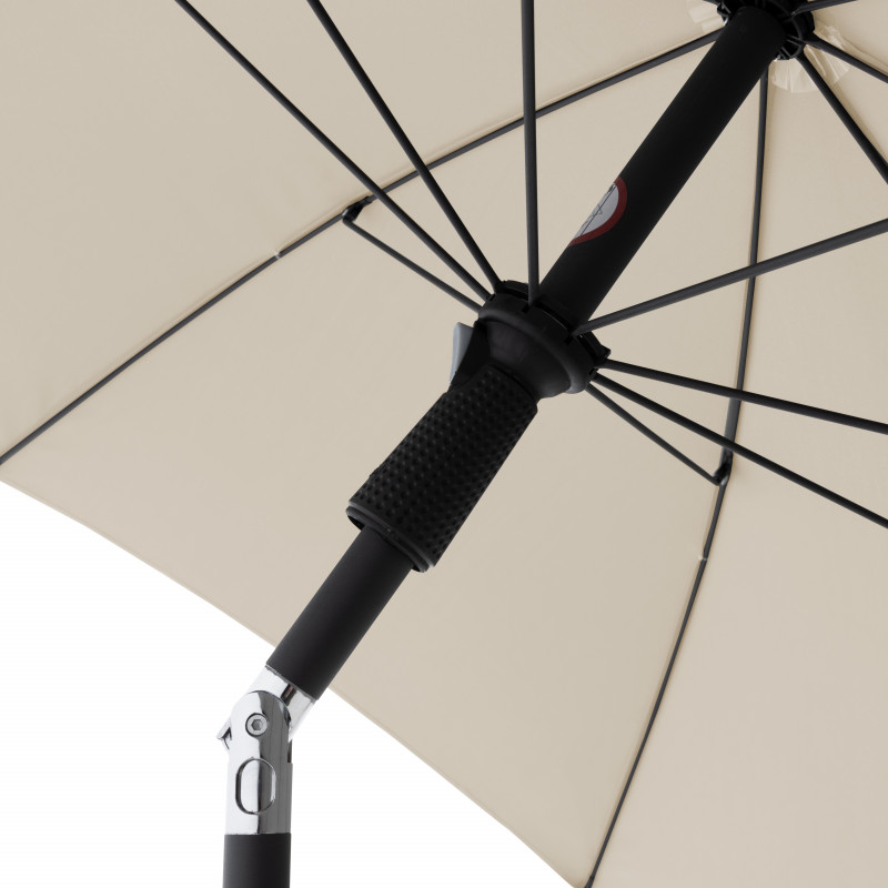 Konštrukcia slnečníka je vyrobená z kvalitného hliníka. Jednoduché a pohodlné otváranie a zatváranie slnečníka je zaistené vďaka kľučkovému mechanizmu. Slnečník je možné naklopiť, preto ponúka dostatočnú ochranu proti slnku. Vodoodpudivý polyesterový poťah je snímateľný a je možné ho prať v ruke. Poťah má vysokú ochrana proti UV žiareniu 50+.