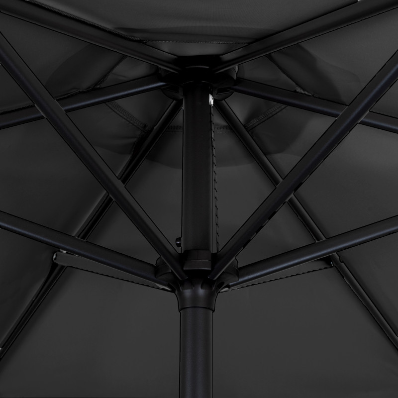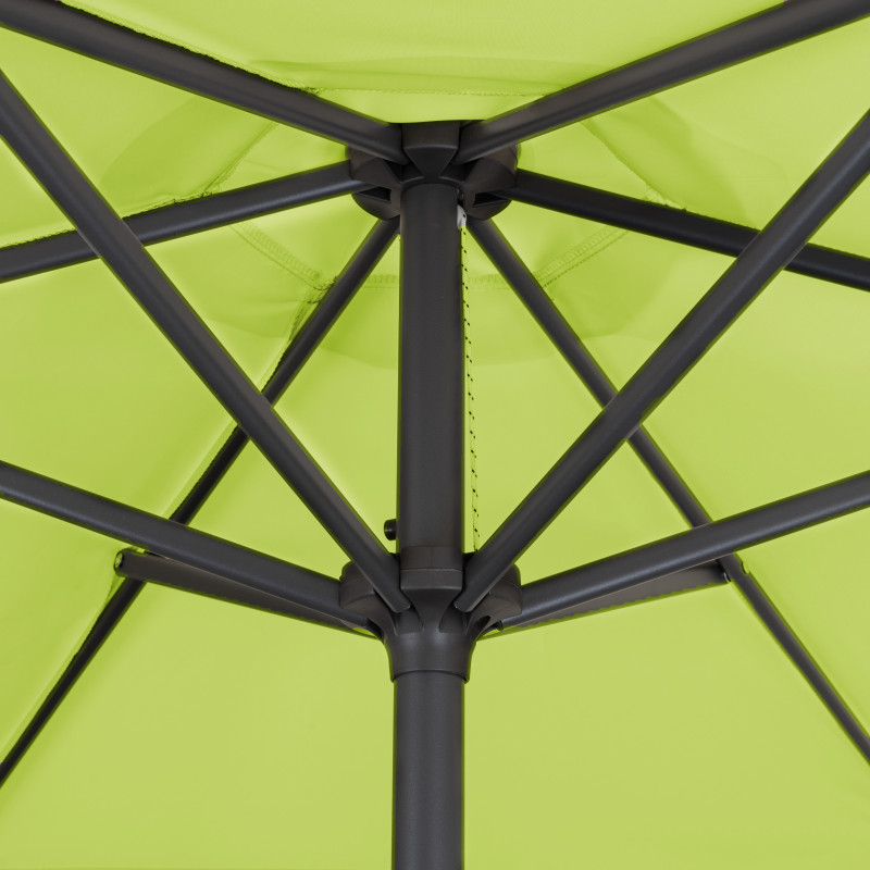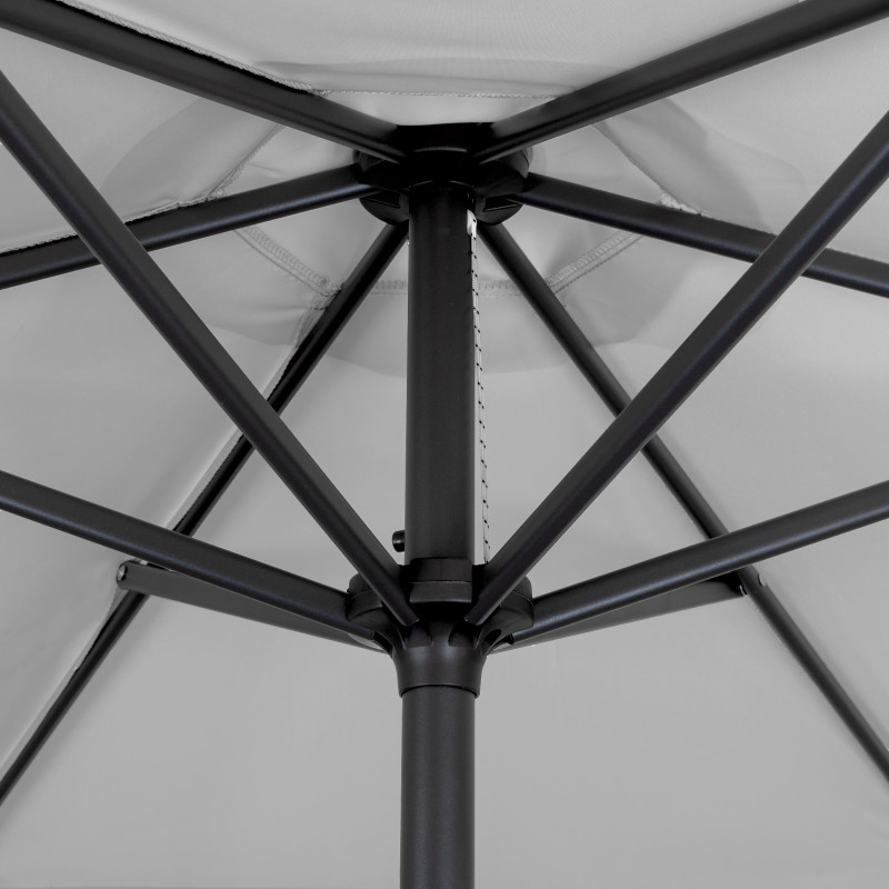 Konštrukcia slnečníka je vyrobená z kvalitného hliníka. Jednoduché a pohodlné otváranie a zatváranie slnečníka je zaistené vďaka kľučkovému mechanizmu. Slnečník je možné naklopiť, preto ponúka dostatočnú ochranu proti slnku. Vodoodpudivý polyesterový poťah je snímateľný a je možné ho prať v ruke. Poťah má vysokú ochrana proti UV žiareniu 50+.