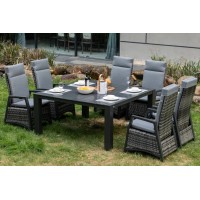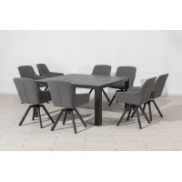 Moderný veľký štvorcový záhradný stôl s nadčasovým dizajnom a stabilnou hliníkovou konštrukciou v antracitovej farbe. Stôl je vhodný na väčšie terasy alebo záhrady. Doska stola je s hliníkovým rebrovaním. Stôl je robustný a zároveň ľahký a stabilný.