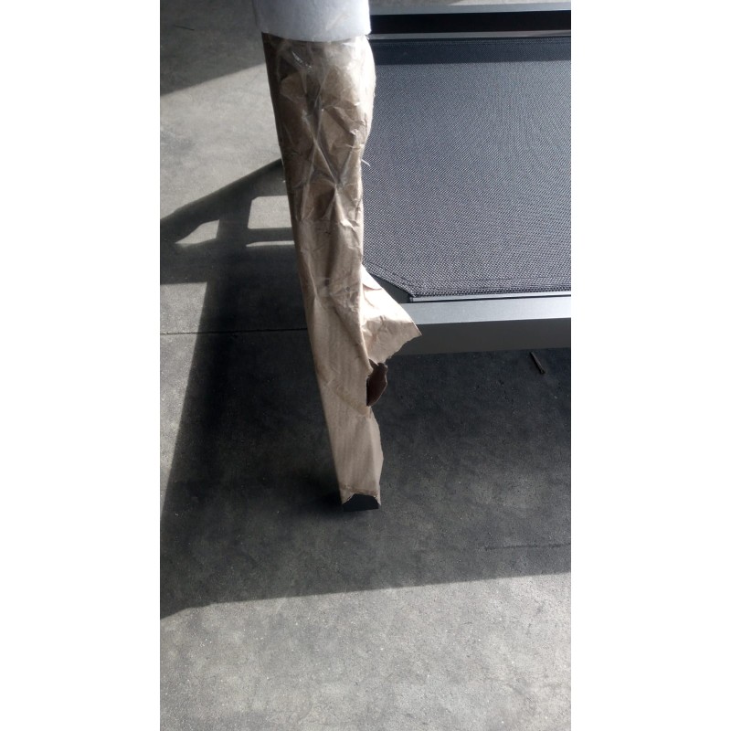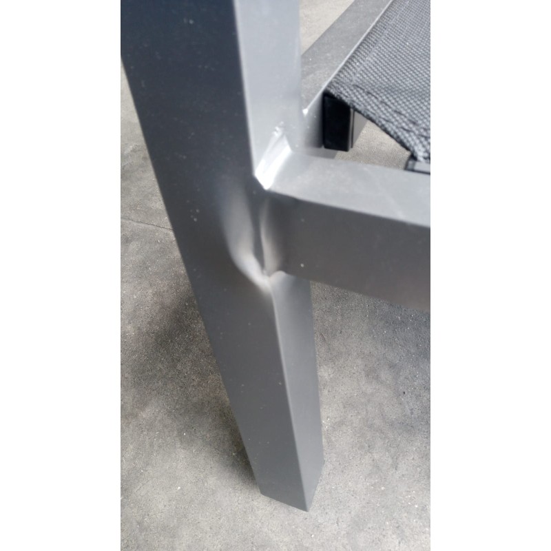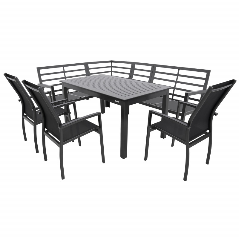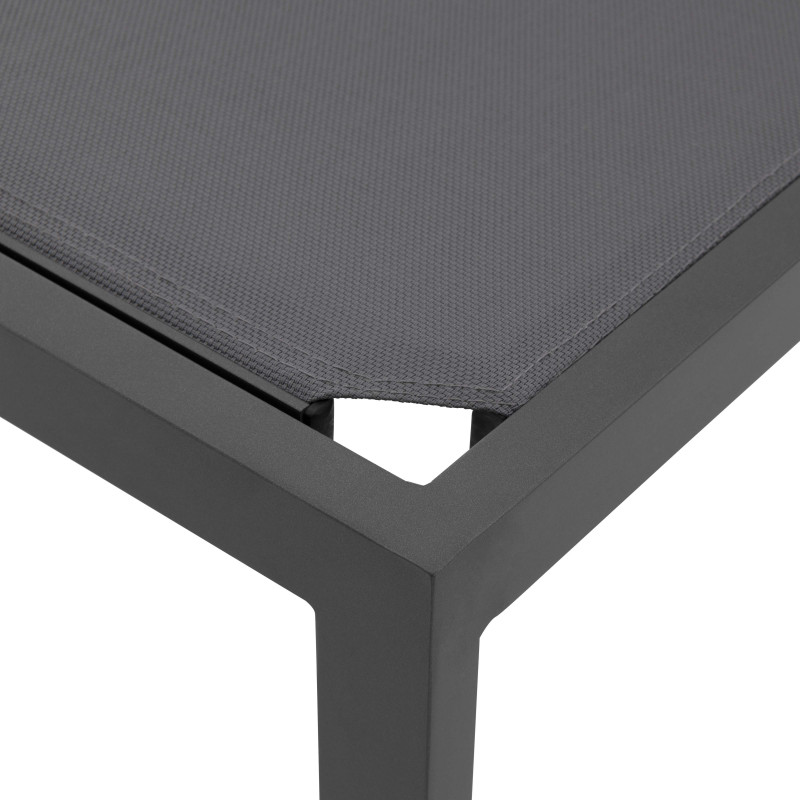 Moderný veľký štvorcový záhradný stôl s nadčasovým dizajnom a stabilnou hliníkovou konštrukciou v antracitovej farbe. Stôl je vhodný na väčšie terasy alebo záhrady. Doska stola je s hliníkovým rebrovaním. Stôl je robustný a zároveň ľahký a stabilný.