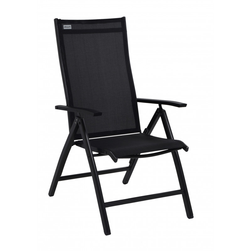 oddychu a relaxácie. Zostava obsahuje 4 polohovacie kreslá z pevnej hliníkovej konštrukcie s výpletom v antracitovej farbe. Každé kreslo má 7-stupňový polohovací systém opierky. Vďaka jednoduchému dizajnu je možné kreslo ľahko rozložiť aj zložiť. Počas skladovania Vám zložená kreslá zaberú minimum skladovacej plochy.