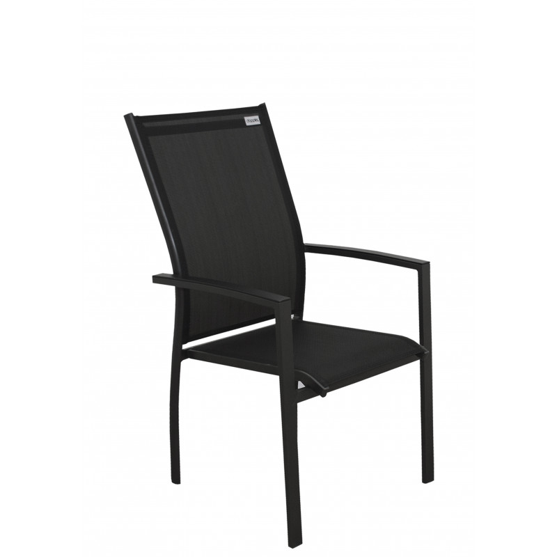 Ďalej zostava obsahuje 2 stohovacie kreslá taktiež s hliníkovou konštrukciou a výpletom v antracitovej farbe. Kresla je možné stohovať na seba a tým ušetriť miesto.