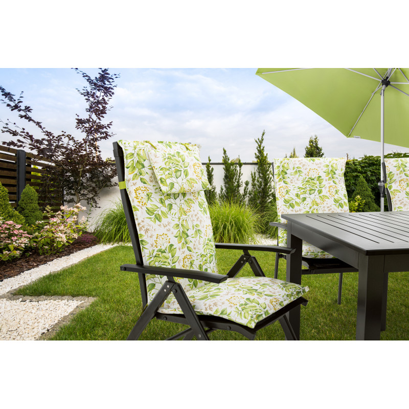 Poduška s vysokou opierkou na záhradný nábytok rady ELEGANT je v prevedení s obšitým lemom. Uchytenie je pomocou posuvnej spony. Vďaka spone si môžete nastaviť veľkosť podľa rozmeru a druhu stoličky, spona je pevná a nevyťahuje sa. Upevnenie sedadla je pomocou dvoch šnúrok v ohybe podušky. Sila podušky je optimálna pre všetky druhy stoličiek. Prevedenie...