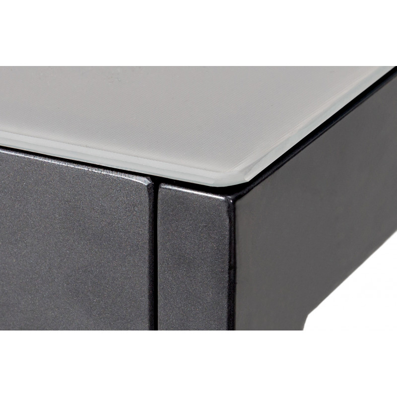 Praktický záhradný hliníkový stôl Luna je nadčasový záhradný nábytok minimalistického vzhľadu. Antracitová farba a jednoduché, čisté línie sú vhodné do každého prostredia. Celý stôl je vyrobený z vysokokvalitnej hliníkovej zliatiny, stolová doska je zo sivého štruktúrovaného skla.