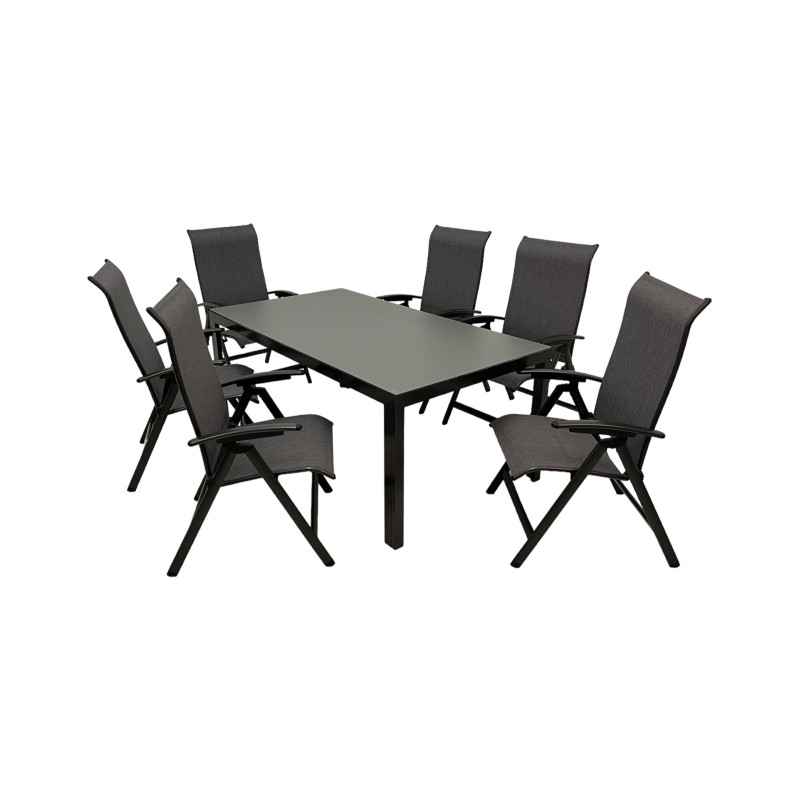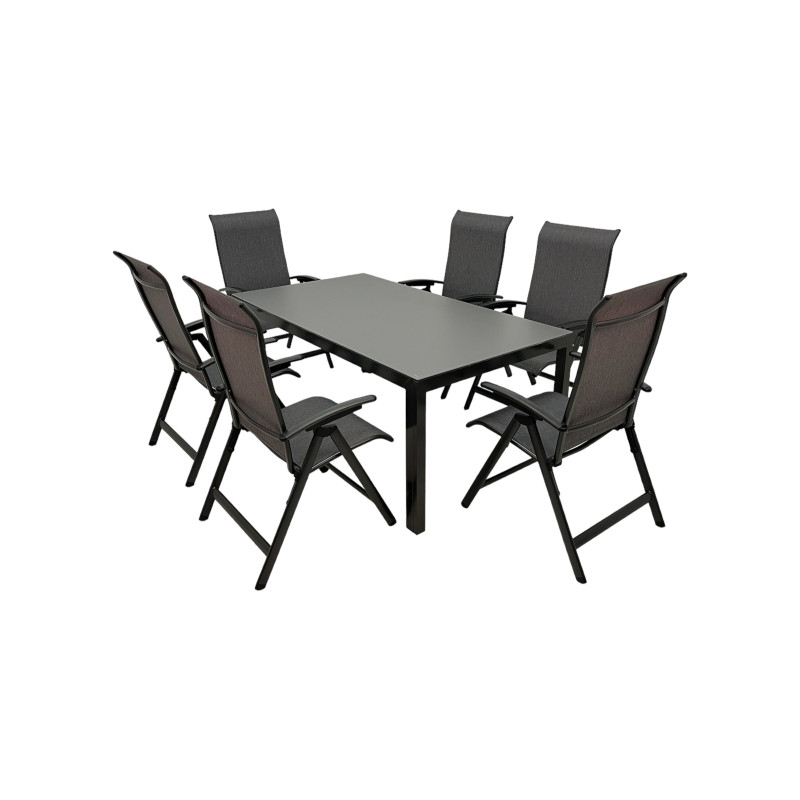 Moderná hliníková súprava je vhodná pre všetkých, ktorí chcú premeniť svoju záhradu alebo terasu na zónu odpočinku a relaxácie. Zostava obsahuje 6 polohovacích kresiel z pevnej hliníkovej konštrukcie s výpletom vo farbe žíhanej šedej. Každé kreslo má 7 stupňový polohovací systém opierky. Vďaka jednoduchému dizajnu je možné kreslo ľahko rozložiť aj zložiť...