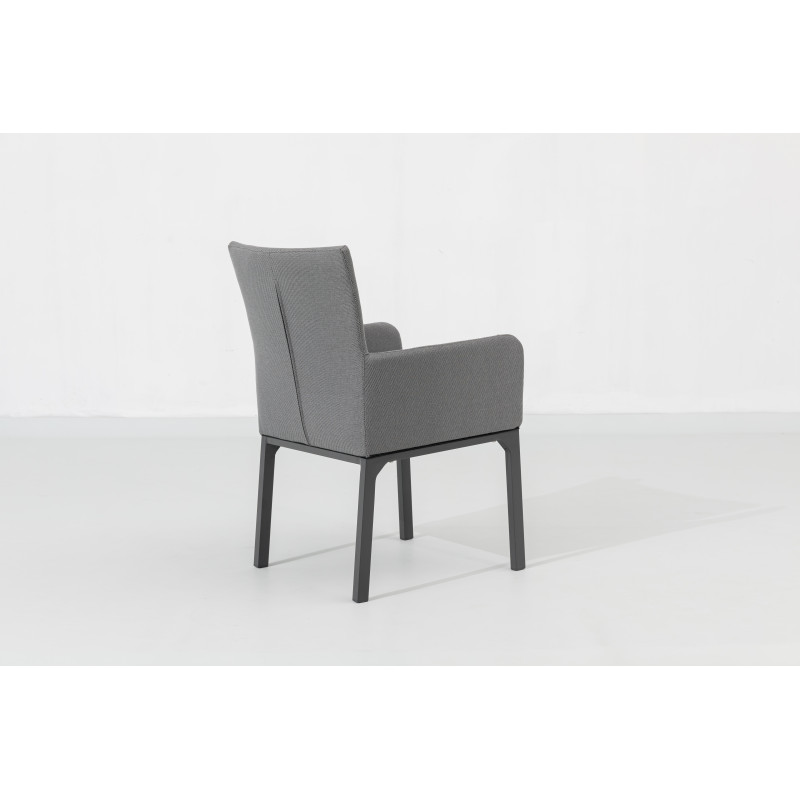 Tombolo kreslo so stabilnou hliníkovou konštrukciou v antracitovej farbe. Moderné polstrované kreslo z látky Olefin v šedej farbe je novinkou tohto roku a rozširuje rad celopolstrovaných jedálnych kresiel z odolných materiálov. Materiál Olefin je syntetická tkanina s vynikajúcimi vlastnosťami na vonkajšie použitie, vhodná aj do záťažových prevádzok. Výplň kresla je z rýchloschnúcej peny.