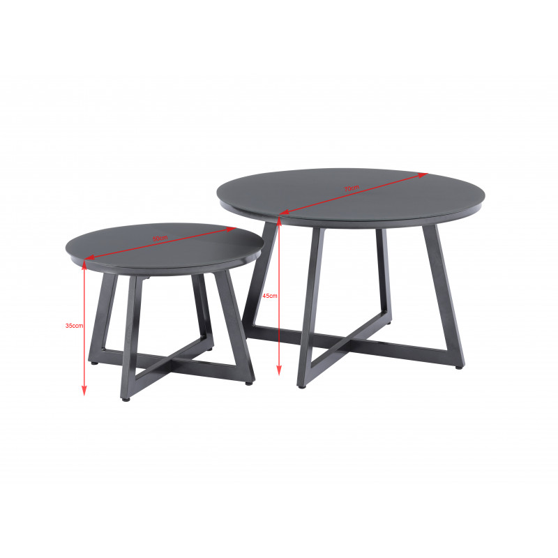 Flexibilné záhradné stolíky Tiso sú vyrobené z pevného hliníka so štruktúrovaným sklom v antracitovej farbe. Čistá línia a moderný dizajn konferenčných záhradných stolíkov ponúkajú veľké využitie, kedy máte možnosť si zostaviť celú modernú záhradnú súpravu alebo konferenčné stolíky využiť v kombinácii s iným záhradným nábytkom.