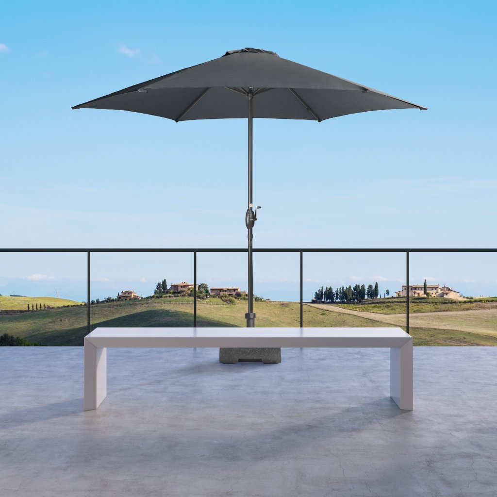 Konštrukcia slnečníka je vyrobená z kvalitného hliníka. Jednoduché a pohodlné otváranie a zatváranie slnečníka je zaistené vďaka kľúčovému mechanizmu. Vodoodpudivý polyesterový poťah je snímateľný a je možné ho prať v ruke. Poťah má dobrú ochranu proti UV žiareniu 50+ SPF.