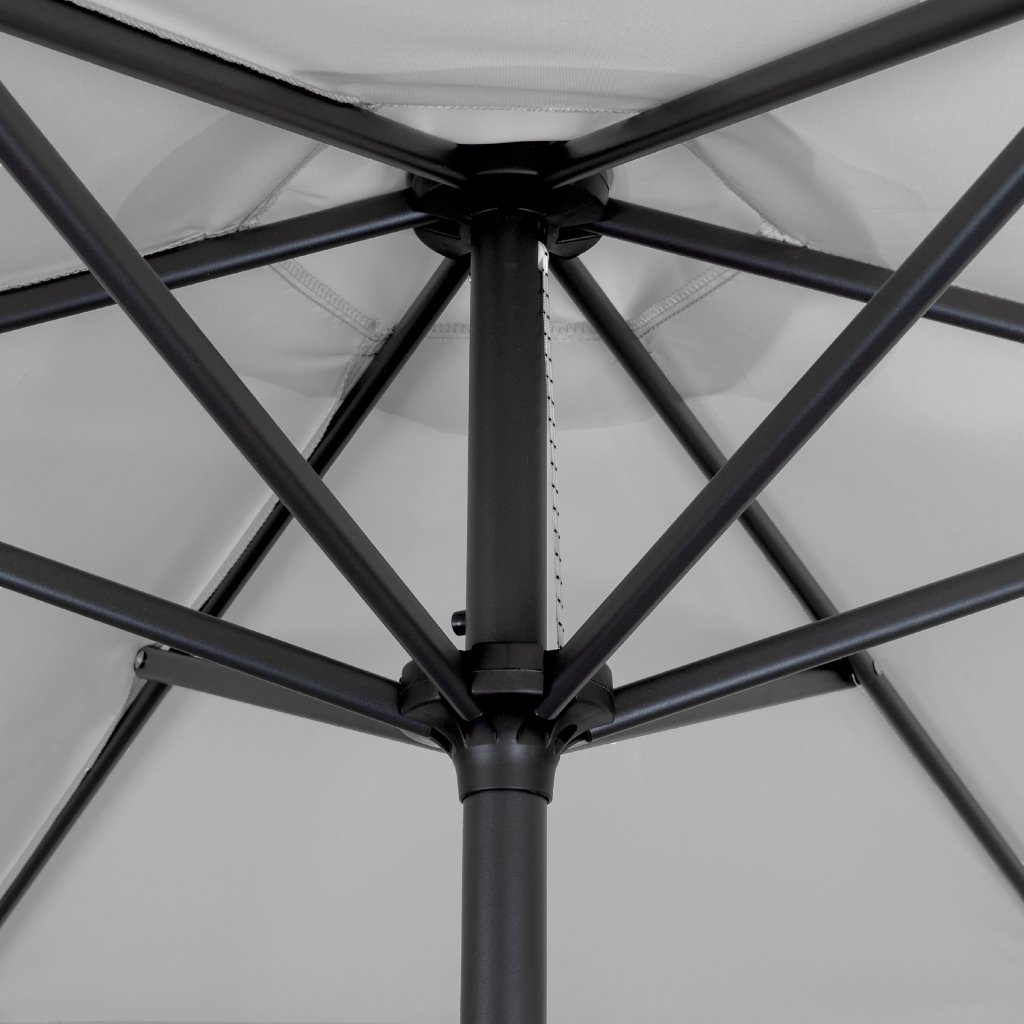Konštrukcia slnečníka je vyrobená z kvalitného hliníka. Jednoduché a pohodlné otváranie a zatváranie slnečníka je zabezpečené vďaka kľukovému mechanizmu. Slnečník je možné naklopiť, preto ponúka dostatočnú ochranu proti slnku. Vodoodpudivý polyesterový poťah je snímateľný a je možné ho prať v ruke. Poťah má vysokú ochranu proti UV žiareniu 50+.