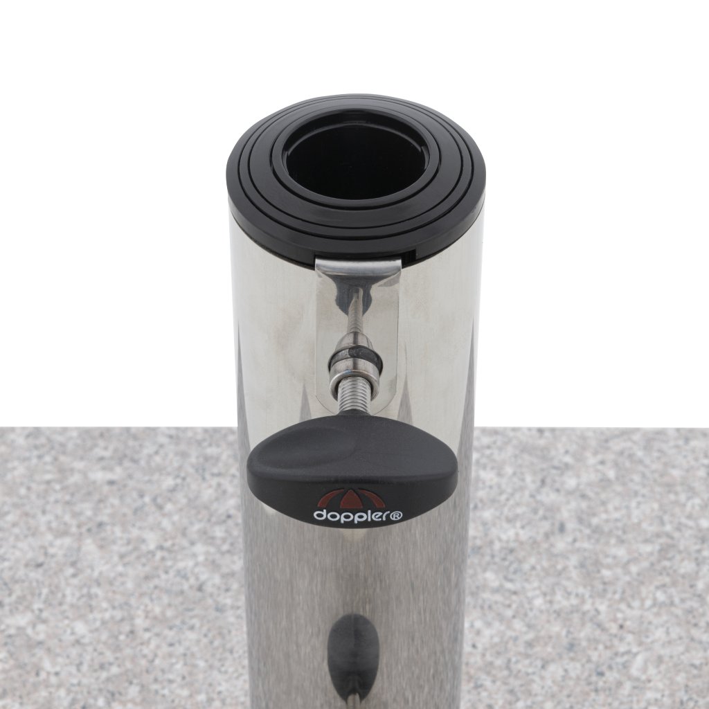 Tento stojan je možné využiť takmer všade, či už ide o balkón, záhradu alebo terasu. Vďaka svojej hmotnosti je podstavec vhodný pre slnečníky s priemerom až 275 cm. Dáždnik je optimálne upevnený v držiaku z nehrdzavejúcej ocele pomocou dvoch upevňovacích skrutiek. Základňa je vyrobená z leštenej žuly. Stojan je tiež vybavený praktickým zapusteným úchytom. To umožňuje ľahké zdvíhanie a nastavenie stojana.